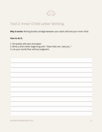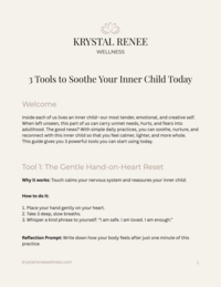 At Krystal Renee Wellness, I believe healing should be accessible to everyone. That’s why I’ve created a collection of free tools, guides, and workbooks designed to help you soothe your inner child, release emotional blocks, and reconnect with your authentic self. Whether you’re just beginning your healing journey or looking for simple practices to support your growth, these resources will give you practical, nurturing steps you can start using today.